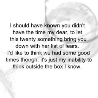 And the silence, it became so very clear that you had long ago disappeared. I cursed myself for being surprised that this didn't play like it did in my mind...